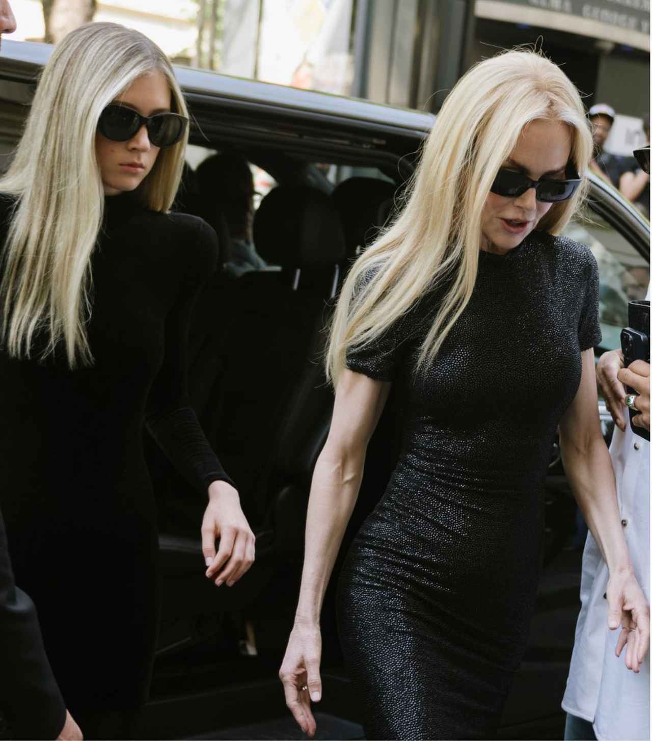 俳優のニコール・キッドマンがバレンシアガ(Balenciaga)のショーに参加した時、子どものサンデー・ローズを同伴。そっくりすぎる姿が話題に。(フロントロウ編集部)