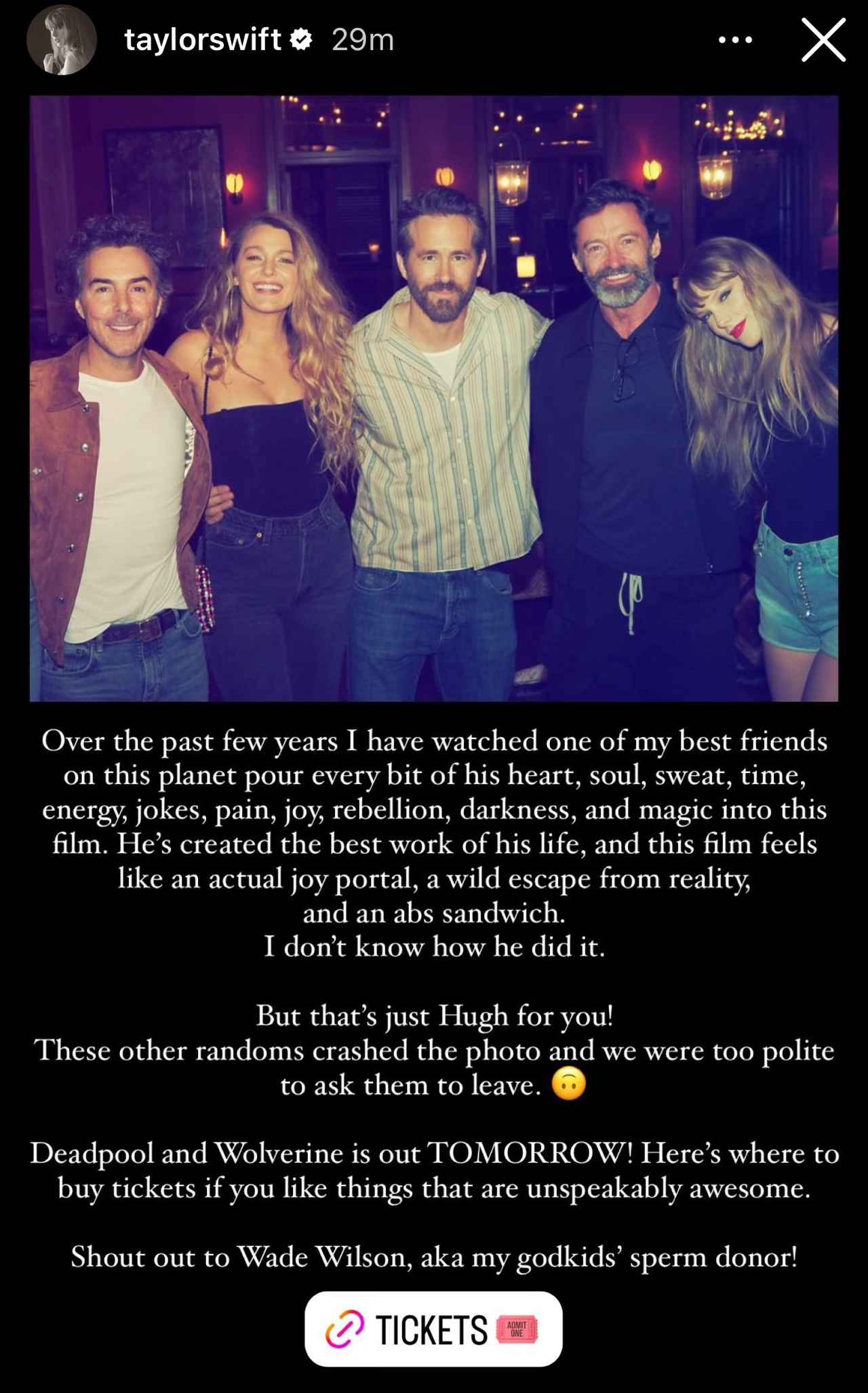 今回ブレイクとライアンの子供ゴッド・マザーだということは、テイラーが自らインスタグラムで告白。テイラーはライアンが主演を務める映画『デッドプール&ウルヴァリン』の宣伝をインスタグラムでした際、「ウェイド・ウィルソン(ライアンの劇中での名前)、別名私のゴッド・キッズのために精子を提供してくれた人にエールを送ろう!」とコメントし、自分がブレイクとライアンのゴッド・マザーだということを明かした。