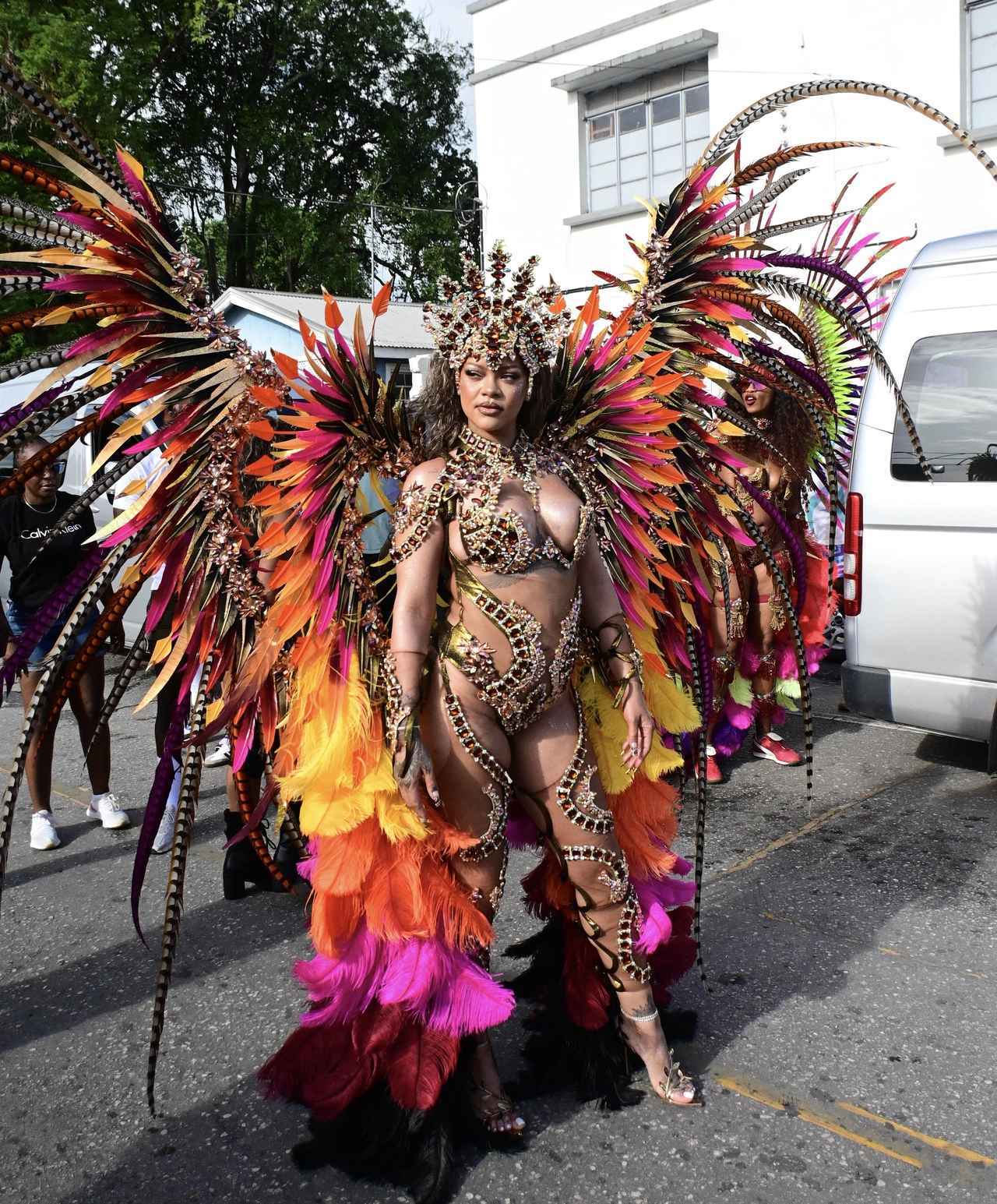 タイミングが合えば毎年のように故郷バルバドスで行なわれる収穫祭に参加するリアーナ。毎年ヴィクトリアズ・シークレットのショーに出てくるような大きな羽を付け、装飾が施されたブラやボトムは注目の的。
