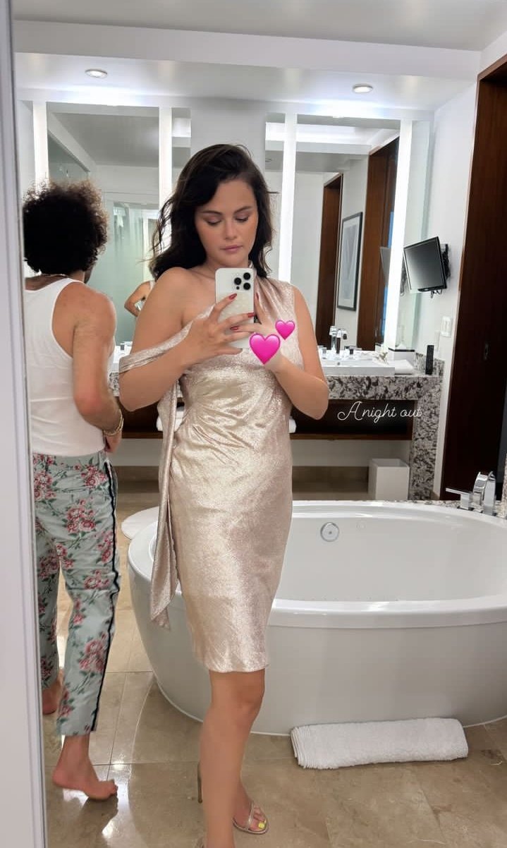 そんなセレーナが、ベニーと婚約したとのウワサが浮上。ことのことの発端となったのは、セレーナがインスタグラムにアップしたドレスを着た写真。その写真でセレーナは、左手の薬指付近にハートの絵文字をつけており、ピンポイントで左手の薬指をハートの絵文字で隠していたことから、婚約指輪を隠しているのではないかと一部から言われており、2人の婚約のウワサが浮上した。