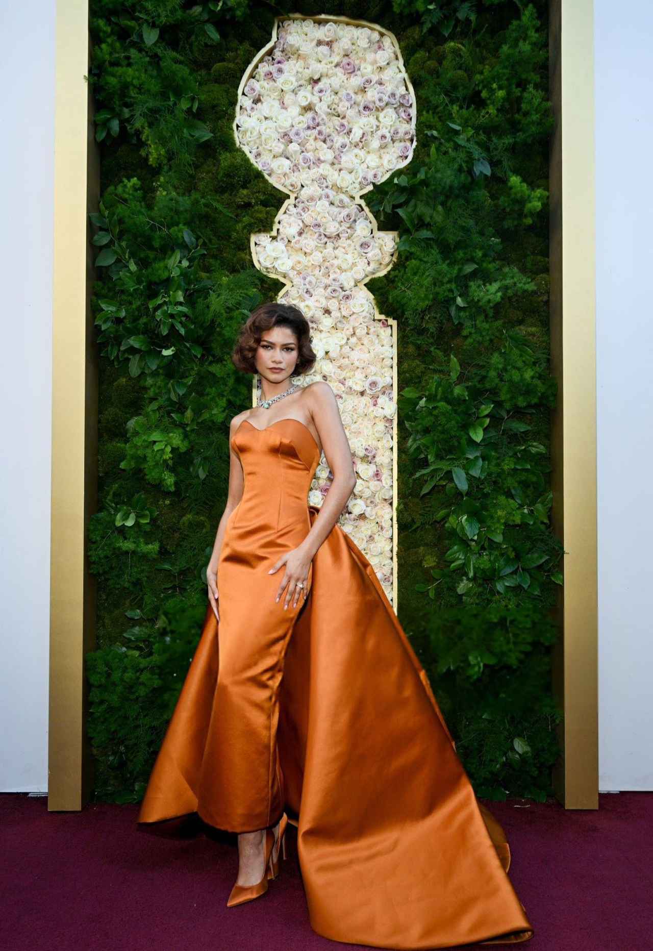 そんなゴールデン・グローブ賞にゼンデイヤが出席。ゼンデイヤはサフランカラーのダブルシルクサテン、プリーツトレーンのカラムビスチェドレスを着用してアワードに出席。