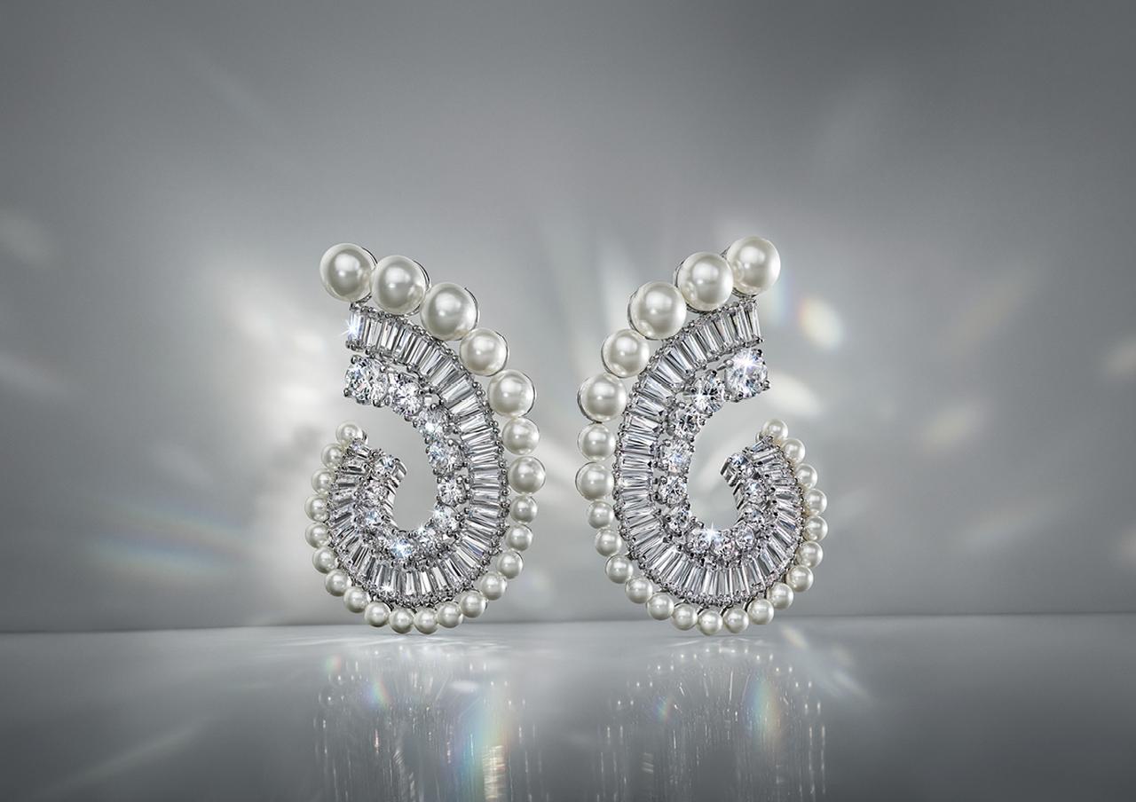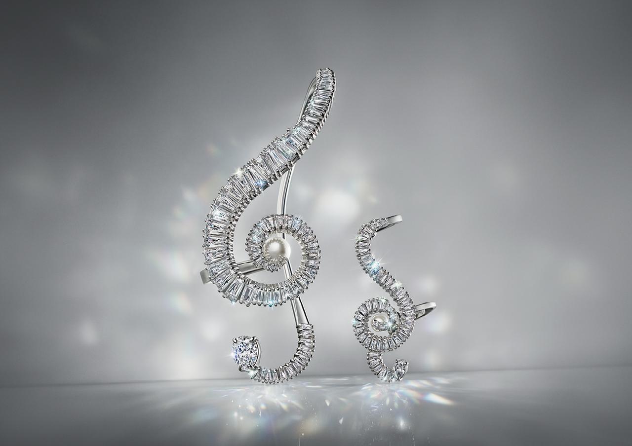 アリアナの輝くようなスピリットとスワロフスキーの華やかさを融合させた16点のコレクションは、音楽の象徴を繊細でありながら印象的なデザインに昇華し、クリア・クリスタルや繊細なクリスタル・パールが際立つ作品に。