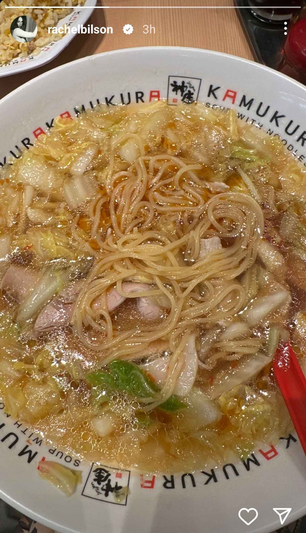 レイチェルは長年交際していたヘイデン・クリステンセンとの間に誕生した子どもと日本を訪れており、京都や東京などを訪問。そして人気ラーメン店のどうとんぼり神座が気に入ったのか、同ラーメンだけの写真を自身のインスタグラムのストーリーズに公開。