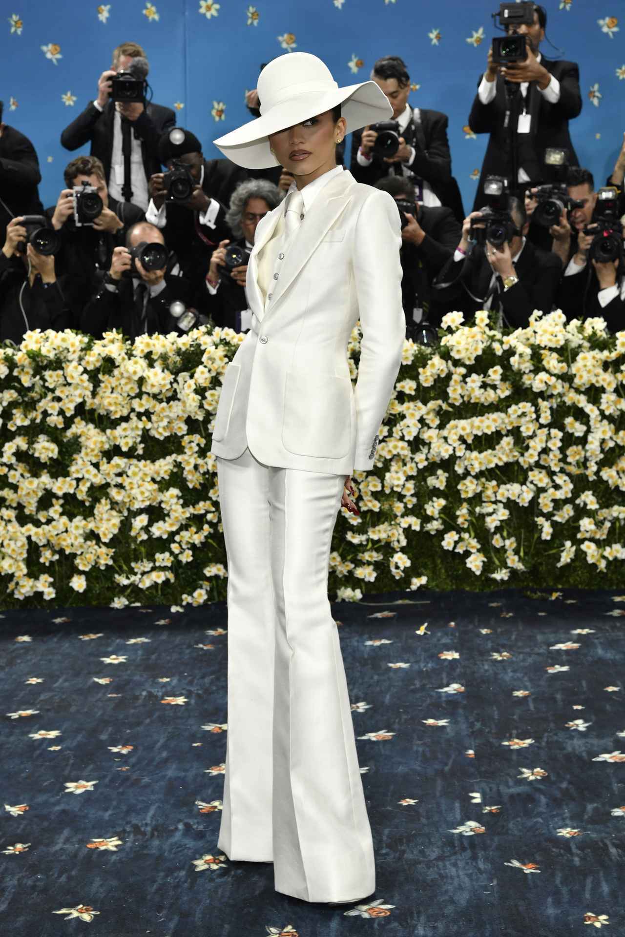 ゼンデイヤはルイ・ヴィトン(Louis Vuitton)、アンナはディオール(Dior)が手掛けた真っ白なスーツを着用して登場。
